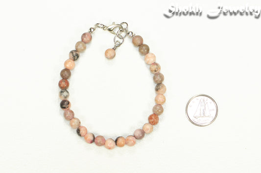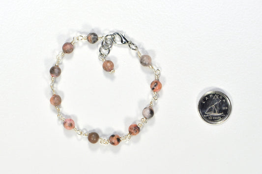 Handmade 6mm Pink Zebra Jasper Link Bracelet for Women