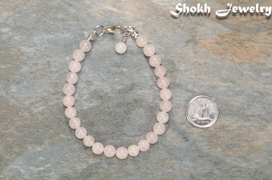 Handmade 6mm Rose Quartz Link Bracelet for Women